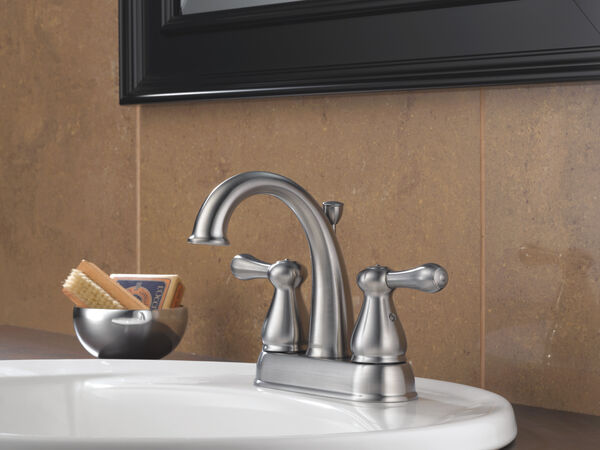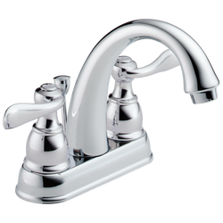 Two Handle Centerset Bathroom Faucet. Configuration which makes it easy to install. Fully covered under Deltas limited lifetime warranty.