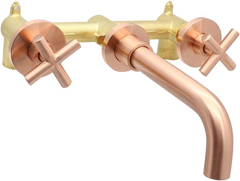 Buy Enga Wall Faucet Luxury Brushed Rose Gold Brass Double Cross Handle Bathroom Sink Faucet For Basin Tub With Hot And Cold Mixer Valve Online In Indonesia B07q31jt4r